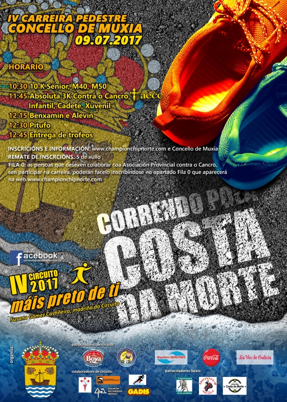 José Miguel Gómez utilizou unha táctica que lle permitiu dobregar ao tamén coruñés Javier Tourís. Así, pouco despois de darse a saída, o vencedor imprimiu un forte ritmo de carreira nun tramo de lixeira pendente, deixando atrás a Tourís. Desa forma, ao final logrou batelo por segunda vez neste circuíto Correndo pola Costa da Morte. A primeira vez fora na cita de Mazaricos. Ambos os atletas marcaron un forte ritmo e chegaron en solitario á meta, do mesmo xeito que Manute, terceiro onte en Muxía, e todo un clásico nas carreiras populares. Míchel Antelo (Vimianzo) e Adrián Vermello (Camariñas) entraron case xuntos, por diante de Gonzalo Silva (Santa Comba) e Anxo Maceiras (O Burgo).