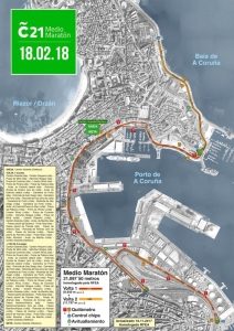 O vindeiro domingo, 18 de febreiro, terá lugar a celebración do Medio Maratón Coruña21, proba que chega a súa décima edición, e que contará coa participación de máis de 1.800 atletas. A carreira, que comezará ás 10.00 horas, terá a súa saída e meta no Cantón Grande e conta cun circuíto de 21.097,50 metros de dúas voltas, deseñado entre Os Pelamios e Oza. Co gallo desta proba, que o Concello despregará un dispositivo especial de tráfico para facilitar a mobilidade da veciñanza no termo municipal durante o desenvolvemento da mesma. Neste sentido, recoméndase evitar, na medida que sexa posible, o uso do vehículo privado nas zonas afectadas e, de ser necesario, aconséllase a circulación polo Paseo Marítimo así como empregar a Ronda do Real Club Deportivo como vía de entrada e saída da cidade.